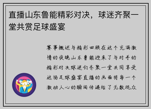 直播山东鲁能精彩对决,球迷齐聚一堂共赏足球盛宴
